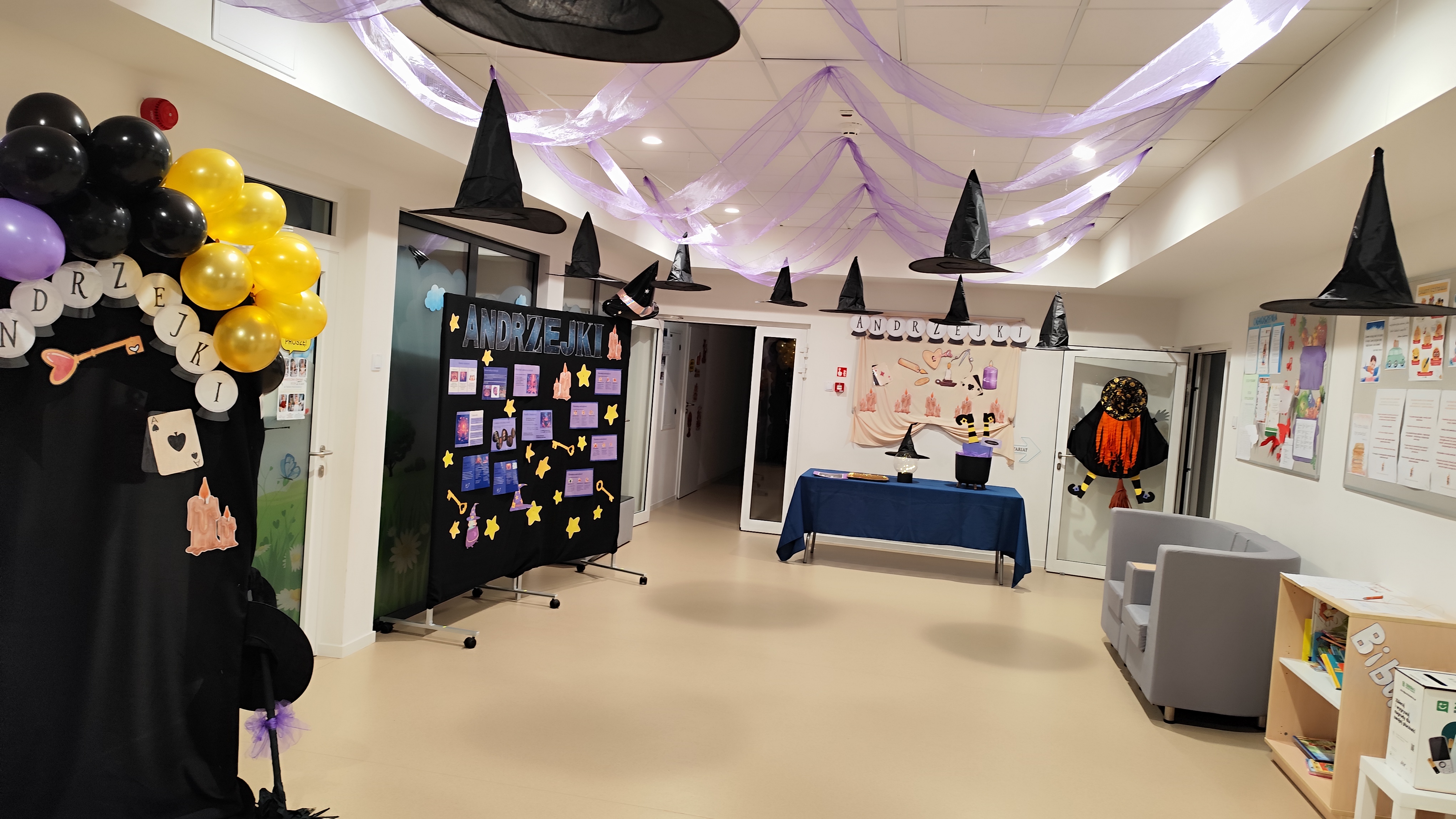 W ostatni listopadowy dzień nasze przedszkole zakwitło czarem niczym zaczarowana księga otwarta na najpiękniejszej stronie. Korytarz, zazwyczaj spokojny jak poranna owsianka, przeobraził się w magiczną salę pełną światełek, tajemniczych symboli i cichych szeptów małych czarodziejów. ✨